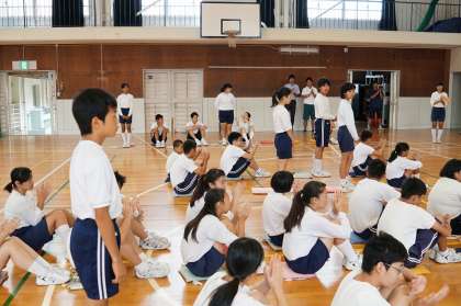 続いて、シンボルマークの作成に携わってくれた生徒を紹介し、全員で拍手を送りました。