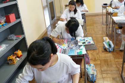 風景画の色をぬっています。