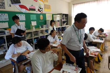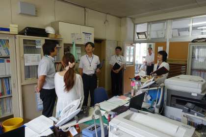 本日、静東教育事務所の渡邊様、沼津市教育長の服部様、沼津市教育委員会の飛田様、佐野様に御来校いただき、学校参観をしていただきました。5時間目、6時間目の授業だけでなく、事務室・保健室等もご覧いただきました。