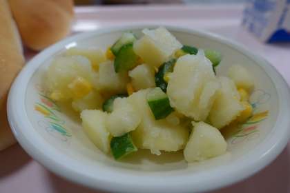ポークビーンズはアメリカの家庭料理です。ケチャップの赤、キュウリの緑、コーンの黄色と、彩りもきれいです。もちろん味もよいです。おいしい給食をありがとうございました。