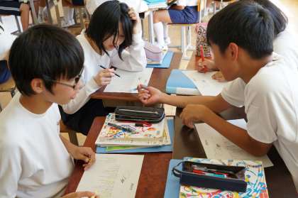 自分の書き込みができたら、班で話し合い意見を交換します。