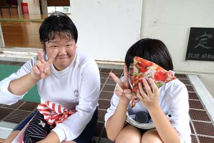 体育の後、「写真撮って」の声がかかりました。