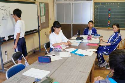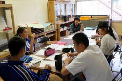 前期の生徒会の反省をしています。