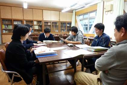 来週の授業に向けて、小中教員で授業案を検討しました。