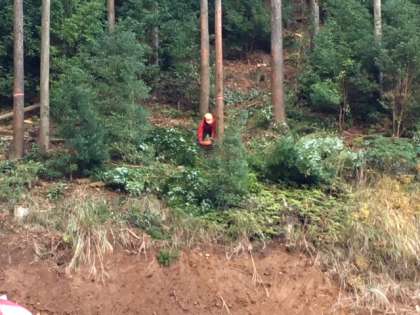 続いては、間伐作業の見学です。木が倒れる瞬間には、歓声があがりました。一本の木が商品になるまでには、色々な人が関わって手元に届くことを実感できる瞬間でした。
