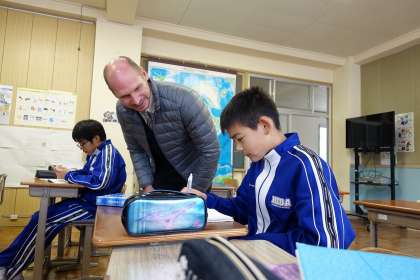 アーロン先生に綴りを教わったり、チェックをしてもらったりしていました。