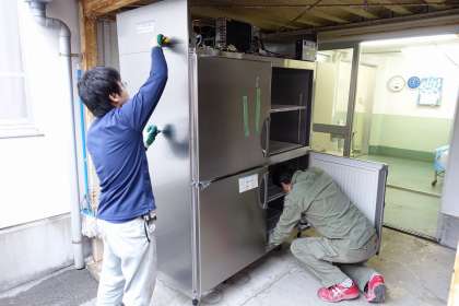 給食室の機器の故障がありましたが、本日、新しい機器が取り付けられました。