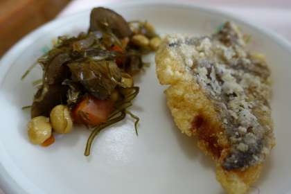 教えていただきました。今日は、煮豆、味噌汁に豆が使われていました。