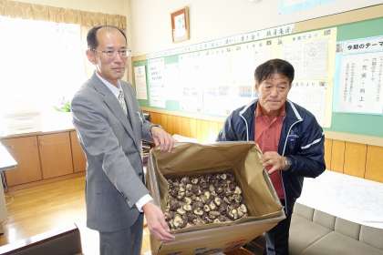 戸田中では、毎年この椎茸をいただき、給食で利用させていただいております。