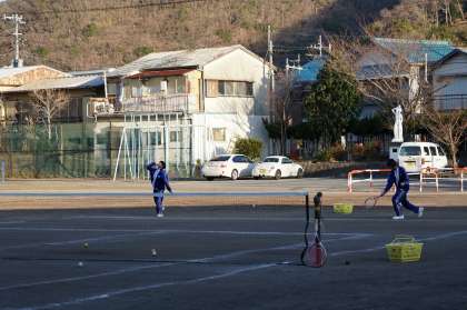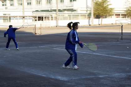 女子テニス部が練習中。