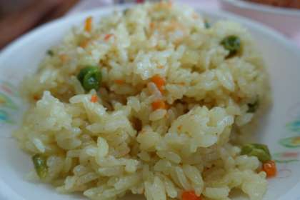 今日のピラフは、カレーのスパイスが香るピラフです。大中寺芋のコロッケもおいしかってです。
