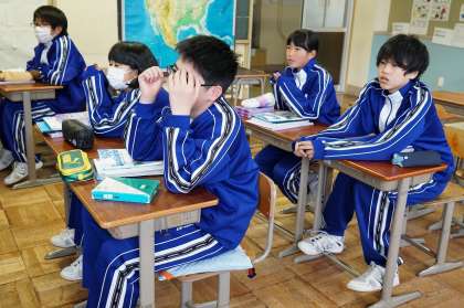 昨年度の大漁踊りのビデオを見て、振り返っていました。