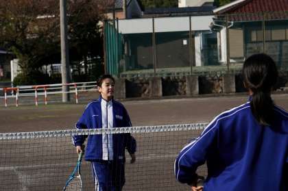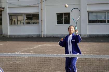 ネット越しで、ボールを打ち合います。