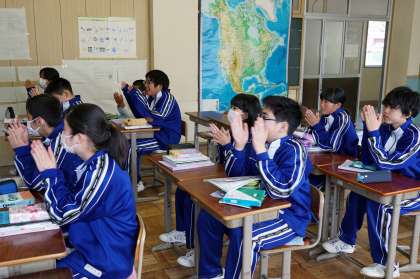 今年もアーロン先生で、生徒も拍手です。