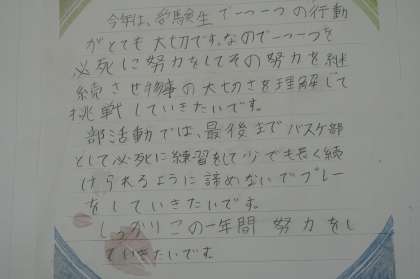 3年生の今年の抱負が掲示されています。