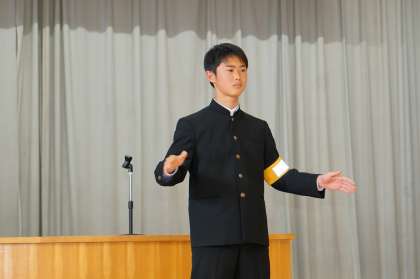 生徒会長の指揮による校歌斉唱