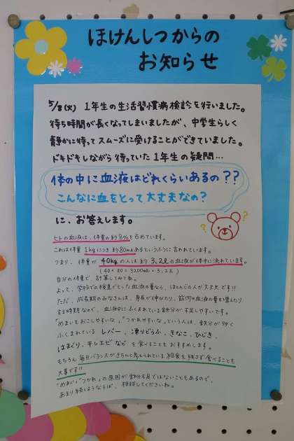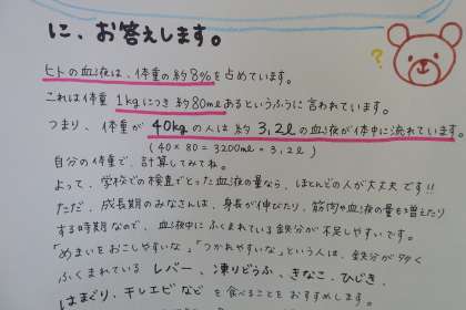 1年生の疑問「体の中に血液はどうれくらいあるのか」