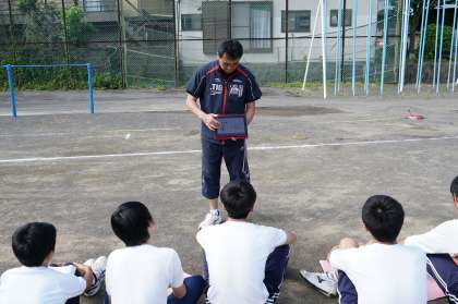 外の体育でも、ICT(タブレット)を活用しています。