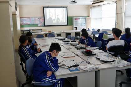 パソコン室で、仏像の学習です。