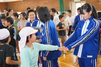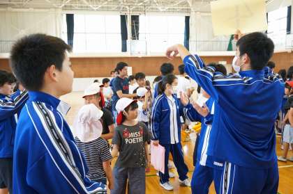 今日は、5月31日(予備日6月1日)に行われる「御浜交流」について、スローガンの発表、その目的を確認するため、小中合同集会を行いました。