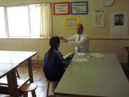 アーロン先生へ英語で伝えています。上手く伝えられたかな?