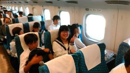 三河安城を出発しました。みんな新幹線の旅を楽しんでいます。