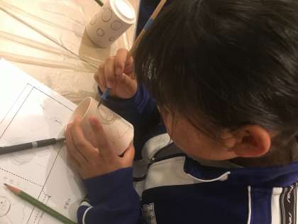 水墨画のように濃淡を使い分けて描いていくそうです。鉛筆で書いた線は高温で焼くと焼け落ちてしまうんだそうで。