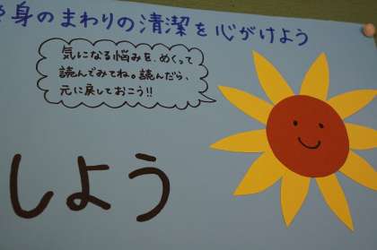 保健室前の掲示板に、「お悩み解決コーナー」が・・・。