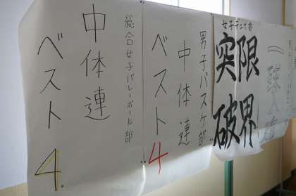 廊下に各部の意気込み、目標が掲示されました。