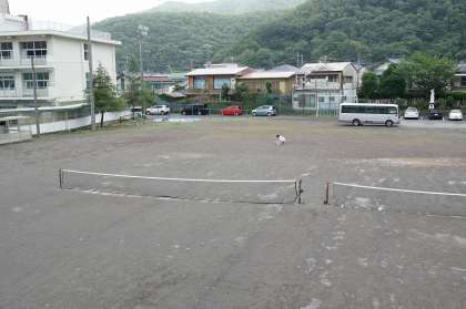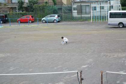 用務員の後藤さんがグラウンドの草抜きをしてくださっています。