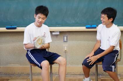 ワールドカップということで、サッカー選手、アニメのキャラクターなどに扮して劇を行ってました。
