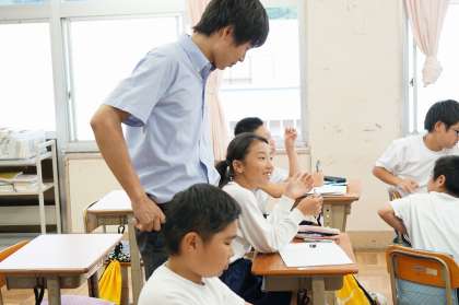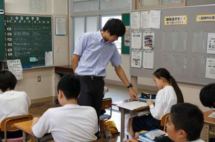 富永先生が、教室内をまわりながら、個別に指導を行って下さっています。