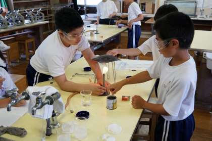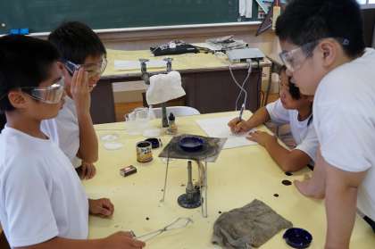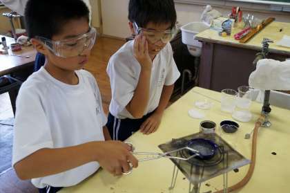 この班は、水に溶かし蒸発させてみるようです。