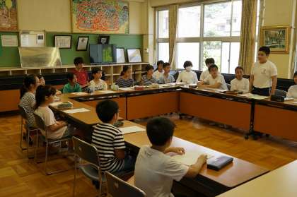 今日の昼休みに、戸田中学校で小中合同の係会を開催しました。