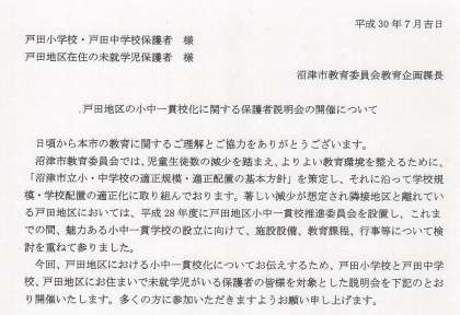 戸田地区の小中一貫校化に向けた保護者説明会