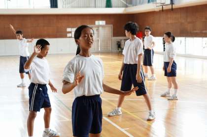 ソーラン節の隊形移動を、ゆっくり確認中です。