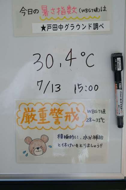 現在は、「厳重警戒」レベルです。20分で給水をするように声をかけます。