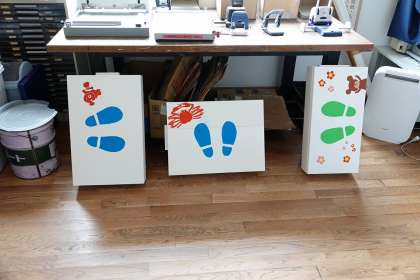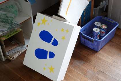 養護教諭の先生にデザインをしてもらい、用務員の後藤さんに作っていただいています。