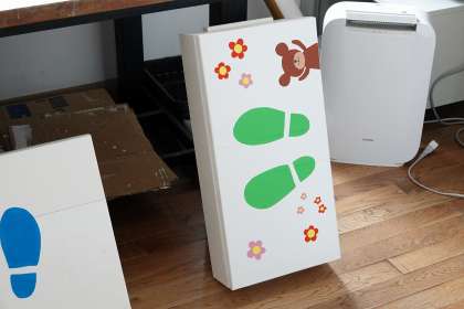 また、小学校1・2年生の子が安全に、楽しく利用できるよう、足を載せる位置やイラストを入れました。