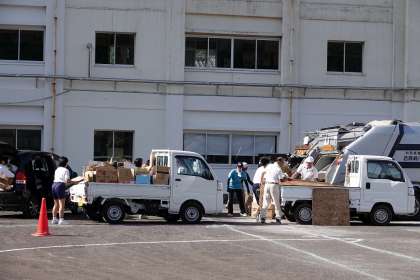 地域の皆様から、ご提供いただいた段ボールや古紙をパッカー車やトラックに積み込みます。