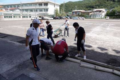 グラウンドの側溝の泥をあげていただきました。