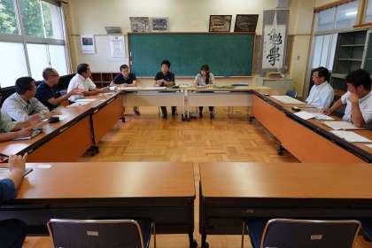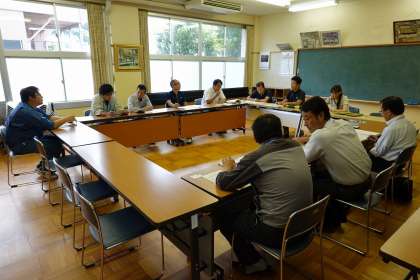 来年度の夏以降に小学校が中学校の校舎に入って、生活するに当たって校舎整備が必要となります。そこで教育委員会の方と業者の方が中学校に来校し、打合せを行いました。