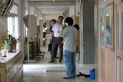 その後、どのような改修が必要となるのか、実際に校舎内外を確認していただきました。