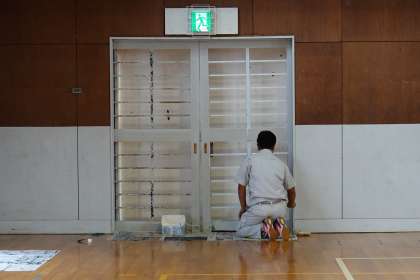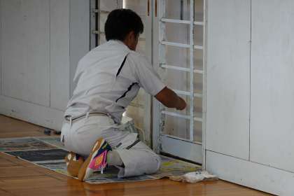 用務員の後藤さんが、ペンキ塗りをしてくださっています。