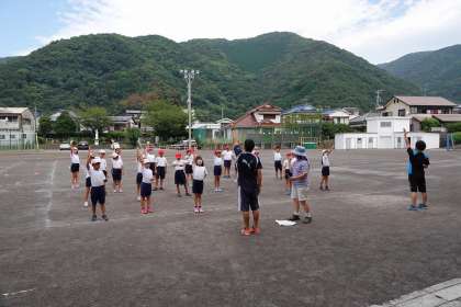 中学校のグラウンドに小学生のかわいい声が響いています。