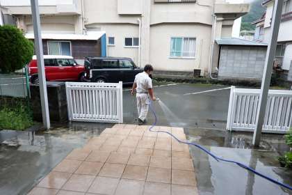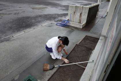 用務員さんや生徒が玄関をきれいにしてくださっています。