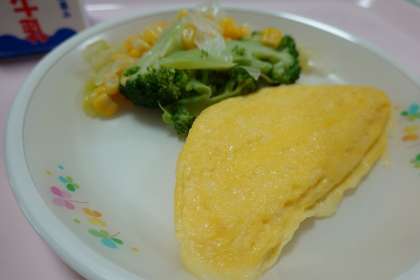 今日は、みんな大好きなカレーライスです!オムレツもチーズたっぷりです!