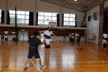小学校の杉崎先生、杉山先生の指導に、本校の山口先生も入って、けががないよう支援に入っています。