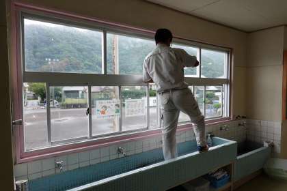 来年度は、小学生が使う水道になるので、うすいピンクにしてみました。