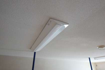 古い蛍光灯の回路のコンデンサー等の部品には、PCBが使用されているということで、教育委員会の方が調査したうえで、本日、交換していただきました。ありがとうございました。(LEDになりました。)